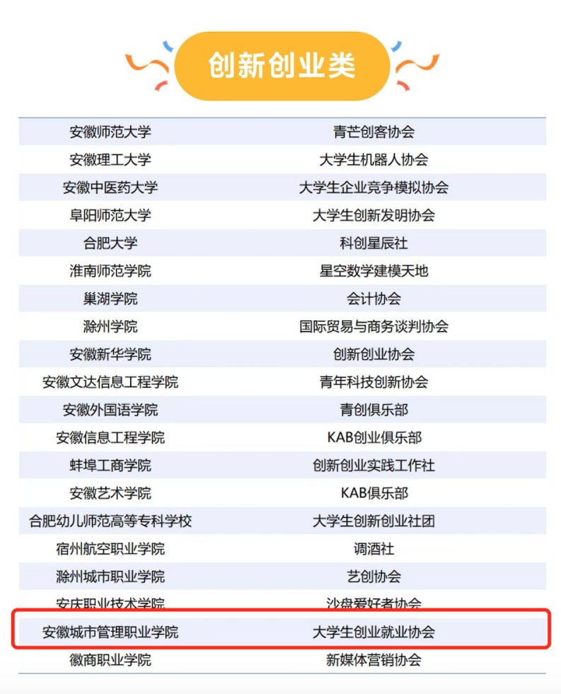 2025年安徽城市管理职业学院校外创新创业孵化基...